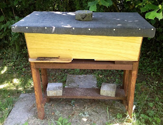 ... then fitted the glass into the hole and assembled the rest of the hive as normal. The cover for the window is on top of the hive with the handle on it.